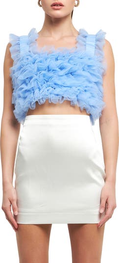Charm endlessly in this gauzy tulle tank fashioned in a cropped silhouette with luscious ruffles.