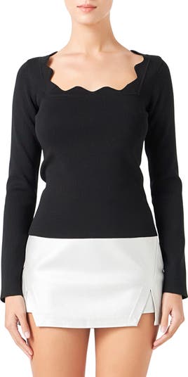 A lightweight staple sweater gets so much sweeter with a squared neckline edged in scalloped shaping.