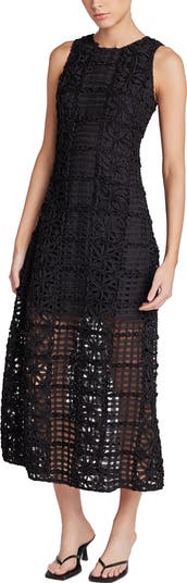 Beautifully woven flowers frolick among a lattice design on this event-ready maxi dress cut from lovely textured fabric.