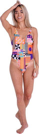 Make this summer your longest yet and brigthen things up with our Endless Summer Onepiece Swimsuit! Orange, Purple and Mint shirts with a little bit of je ne sais quoi are guaranteed to turn heads all the way through the year! Our women’s onepiece swimsuit features our cheeky 'Retro Fit' with a High Leg, Low Back & V-Cut Front for a fun, playful holiday look. Make sure you look fresh from the beaches to the ski resort hot tubs this season with the funky retro orange and purple one piece womens swimsuit Made from 100% Recycled Polyester from plastic bottles recovered from the sea & we also have the matching men's shorts & Shirts for those matchy matchy poolside moments & epic couple shots for the gram! Check out the full bikini collection! Features: