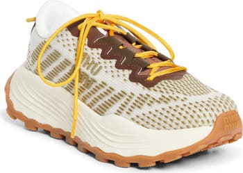 Vibrant color-pop accents enhance the energetic vibe of a running shoe-inspired sneaker featuring a technical fabric upper set on a dynamic sole with pebbly lugs.