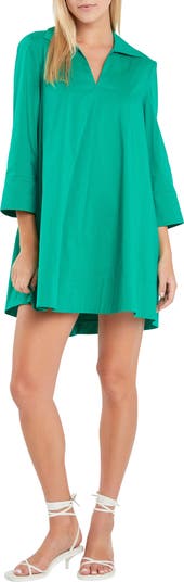 This crisp cotton-blend dress is designed in an A-line silhouette with a polished collar.