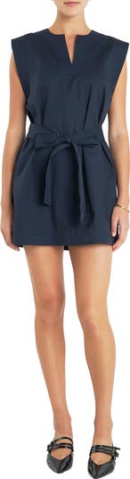A polished mini is cut from crisp cotton and cinched with a matched sash.