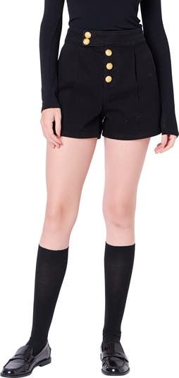 Bold buttons draw attention to these nonstretch-denim shorts made of sturdy cotton and designed with pleats in the front for an elevated vibe.