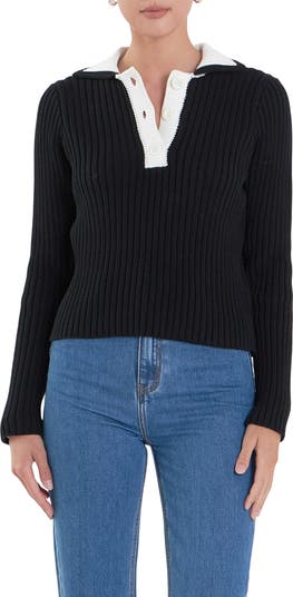 Contrast trim creates a sleek, monochrome look on this wide-rib polo in a modern, slightly cropped silhouette.