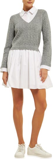 Effortlessly achieve the layered aesthetic in this mixed-media dress crafted with a cable-knit sweater overlaid on a collared cotton base.