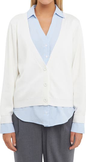 Get the layered look you love without all the bulk when you choose this mixed-media cardi made with fully functional buttons.