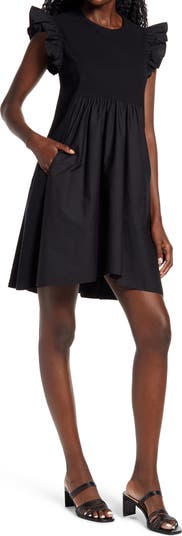 Sweeten your day-to-night vibe in this charming frock styled with a knit bodice and crisp poplin contrasts.