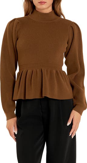 Mock Neck Peplum Rib Sweater