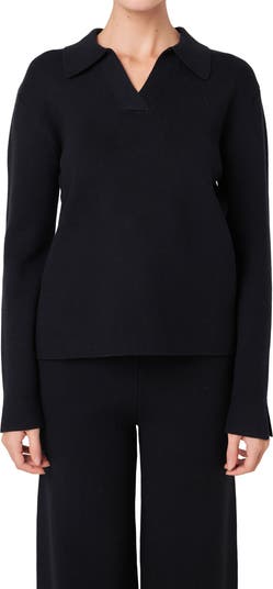 Get cozy in this irresistible sweater styled with a polished polo collar and soft allover ribbing.