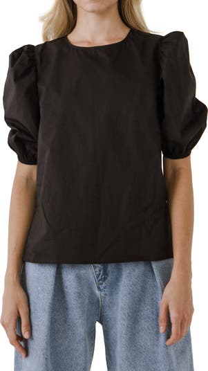 Full of charm, this crisp poplin top is framed with perfectly puffed sleeves for an irresistible silhouette.
