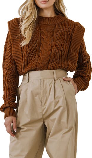 Pronounced neck-to-hem ruffles frame the rich texture of this crewneck sweater knit from exceptionally soft yarns.