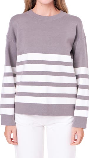 This season-staple sweater is knit with dropped shoulders and lively stripes.
