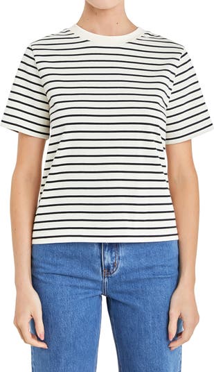 Crisp stripes add a cool, preppy vibe to this crewneck T-shirt cut from breathable cotton jersey.