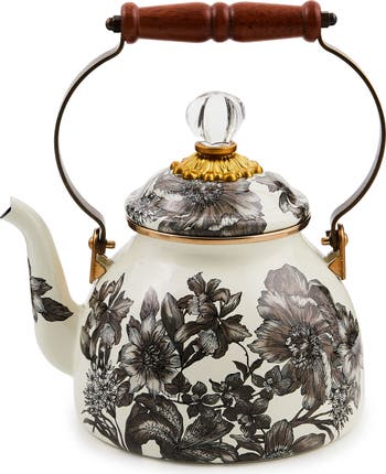 Hand-applied floral accents and a heavy-gauge steel underbody highlight the artisan craftsmanship of this kettle detailed with bronzed accents and a regally faceted glass knob.