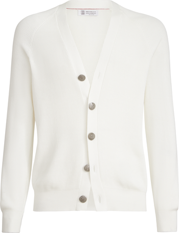 - Metal button closureV-neckRaglan sleeveRib knit cuffs and bottom bandEnglish rib
