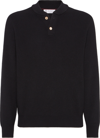 - Henley collar in rib knitButton openingRegular shoulderRib knit cuffs and bottom bandEnglish rib