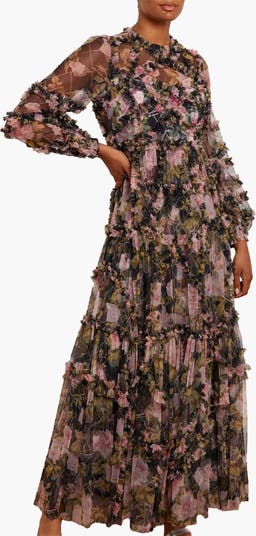 The English Rose Diamond Ruffle Gown is inspired by a traditional rose print taken from a 1900s hand-painted artwork, in soft hues. Developed with signature Needle & Thread styling featuring perfectly engineered frills for all-over delicate texture. The perfect gown to take you from dinner to the dancefloor.