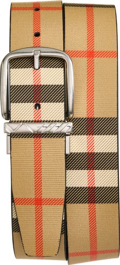Your ensemble will be cinched and ready no matter the occasion with this fully reversible belt featuring a classic Italian-leather design contrasted by the iconic checks on the opposite side. An ornately engraved buckle ties the look together.