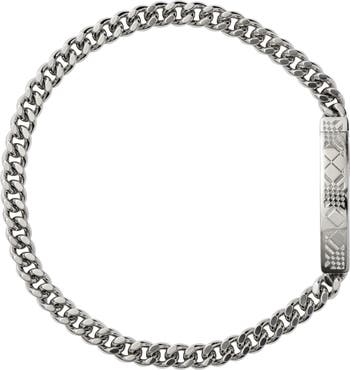 A palladium-plated chain bracelet made in Italy. The design is secured with a sleek push-button closure, intricately engraved with a check pattern.||Push-button closure|Comes with a dust bag