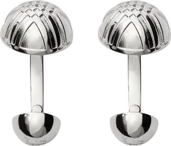 A pair of palladium-plated cufflinks made in Italy, intricately engraved with a check pattern.||Engraved Burberry lettering at back|Comes with a dust bag