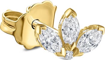A trio of marquise diamonds fans out into a lotus in this 18-karat-gold stud framed with pavé and engraved milgrain.