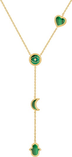 The light in you seeks out the light in others, reaching deeper into your humanity will illuminate your path towards peace. Wear Malachite for those moments in life propelling you towards major changes and energy shifts. Our “Enlightened Soul Malachite Multi-Symbol Gold Necklace” shows off Malachite’s stunning rich green tone with Karma and Luck’s signature style. Wear this beautiful piece featuring 18K Gold-plated Silver and Brass, with multiple symbols that add protection and welcome abundance for a timeless look.