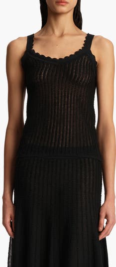 Softly scalloped trim lends Khaite's signature sensuality to a semisheer tank top enhanced with silk and cashmere.