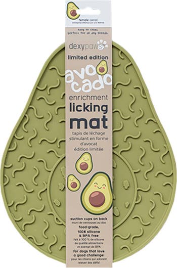 DEXYPAWS: AVOCADO ENRICHMENT LICK MAT - Did you know that your dog's favorite wet or raw food can be spread onto the mat to replace its feeding dish? And did you know that using an enrichment lick mat is a great way to help your dog slow down during feeding time? We do this all the time with Dexter! This is a must-have in our household, it’s a dexy fav! Our avocado lick mat is easily one of our bestsellers and for good reason - its cute shape, bright color and textured grooves makes it a perfect aesthetic addition to your dog's enrichment kit. The suction cups on the back keep the mat in place. EASY TO USE: All you need is a little peanut butter, raw food, or plain yogurt! Smear it on the lick mat and watch the magic unfold - your pet is going to be captivated and soothed by the textured grooves as they work their way through the lick mat. It's also easy to clean, it can go in the dishwasher, and is made out of 100% food-grade and BPA-free silicone, ensuring your pup is safe whilst enjoying themselves! These lick mats are great for stressful moments like bath time or when your pet is feeling anxious. Material: Food-grade 100% silicone & BPA free.