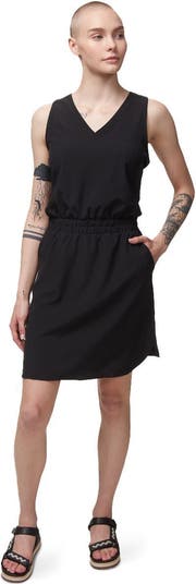 From the middle seat in coach to beachside sips, the wrinkle-opposed Ensenada Dress keeps us feeling and looking good throughout our wandering. We stay cool in our balmy destination draped in the breezy performance material, while the gathered elastic waist and curved hem give us a flattering silhouette.