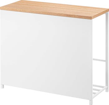 Additional features: This small-but-mighty-cute bench has storage space for shoes, toys, bags—whatever tends to accumlate in the entryway—and is topped with stacked-wood shelf to hold you, your bag or your favorite piece of welcoming decor.