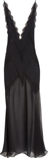 A featured style in Haider Ackermann's spring '26 runway show, this satin and sheer lace slipdress exemplifies the collection's theme of seduction and desire in a deft conceal/reveal design.
