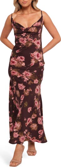 Moody flora serve '90s nostalgia in this romantic maxi dress that gracefully skims your shape in lightweight chiffon.