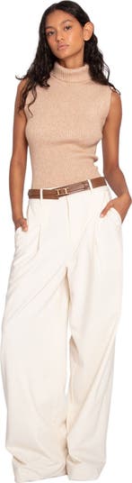 The Equation Sleeveless Turtleneck Knit is a refined essential that blends sophistication with modern ease. Designed for a sleek, form-fitting silhouette, this top features a ribbed texture that enhances its flattering shape. The high roll-neck adds a touch of elegance, while the sleeveless cut makes it a versatile layering piece. Crafted from a soft viscose-blend, it delivers comfort with a luxurious feel—perfect for effortless styling from day to night.