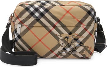 Burberry's iconic Equestrian Knight—first introduced in 1901—makes a gallant, camouflaged appearance on this compact crossbody marked with House Check.