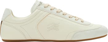 House codes collide in this streamlined leather-and-suede sneaker, where the iconic Equestrian Knight Design gallops gallantly in tonal embroidery and instantly recognizable checks pop in contrast webbing at the heel. A slim rubber sole with check-debossed tread delivers extra traction under every step.