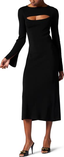 A peekaboo slice reveals just enough skin in this sleek knit dress fashioned with elegant slit cuffs.
