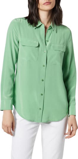 Sumptuous washed silk styles a chic, menswear-inspired shirt with an eased fit and longer length.