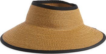 A packable visor springs back to its original shape after travel, fashioned with a removable terry band for easy cleaning.