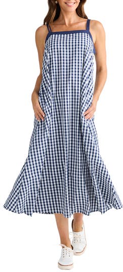 Crisp, classic gingham adds a breath of fresh air to this A-line midi dress complete with contrasting straps.