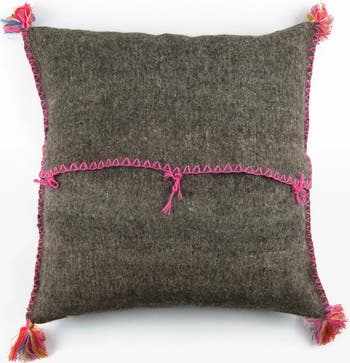 Our festive Erika Pillows are handcrafted in Chiapas, Mexico from the wool of locally raised sheep, woven on a loom with intricate hand embroidery. 22"x22"Dimensions do not include corner tassels. Due to their handmade nature, dimensions may vary slightly. Inserts are not included. We recommend that you size up to a 23"x23" or 24"x24" insert for a better fit.