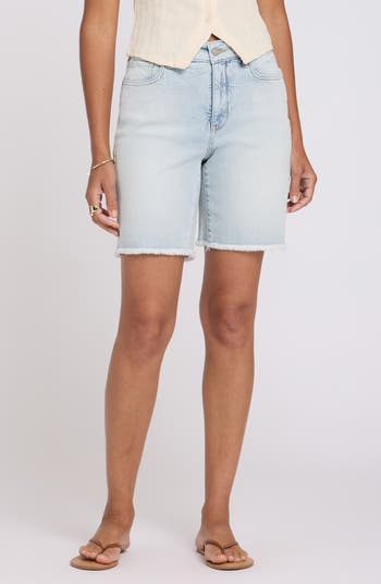These straight-leg stretch-denim shorts bring beach-comber vibes to your look with frayed hems, a longer length and exclusive Lift Tuck® Technology that smoothes and supports in front and lifts in back.