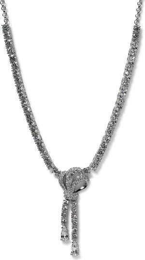 Dazzling round cubic zirconia lead to a knot drop on this glamorous Y-necklace hand-polished to perfection.