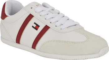 A padded collar adds to the comfort of this low-profile sneaker minimally branded by a tricolor logos that add heritage American style.