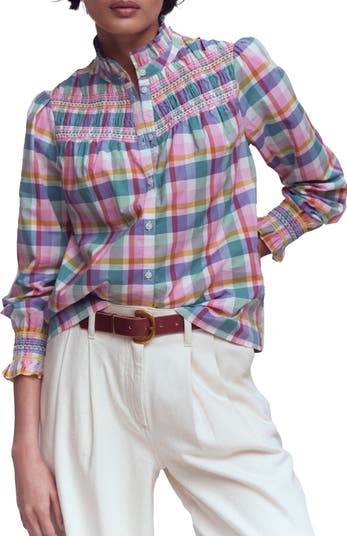 Esme Check Smock Detail Cotton Button-Up Shirt