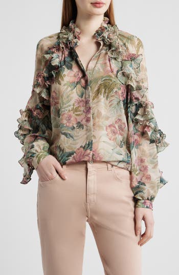 Esme Floral Ruffle Button-Up Chiffon Shirt