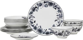 [This review was collected as part of a promotion.] I was very excited to get some new dishware! I think the pattern on these is gorgeous. They are porcelain so they look delicate but also sturdy enough to dig into a good plate of food. I ran them through the dishwasher before using and they held up just fine. They are also microwave safe which is a plus. It came with 4 nice size bowls, 4 dinner plates and 4 smaller size plates. Perfect for me. I'm really really happy with these and have yet to find any downsides.