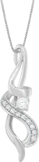 Espira 10K White Gold 1/5 cttw Round Cut Diamond Swirl Pendant Necklace