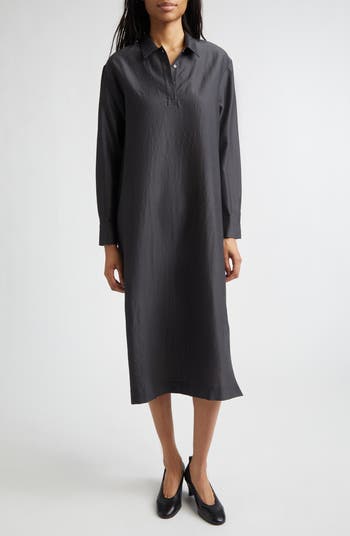 Espon Long Sleeve Wool & Silk Midi Shirtdress