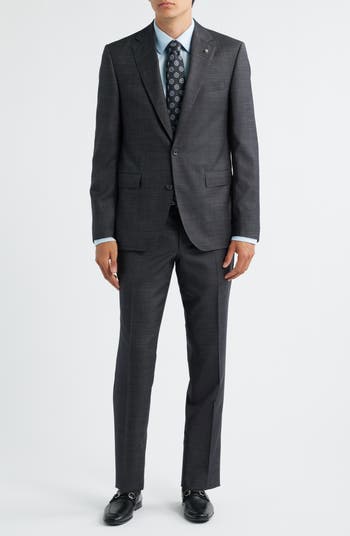 Italian wool cast in a charcoal-grey mélange distinguishes a wardrobe-staple suit that's tailored with softer construction in the shoulders fitted in the waist for a smart, all-occasion look. The flat-front trousers sit just above the hips and feature lightly tapered legs to keep the silhouette crisp and clean.